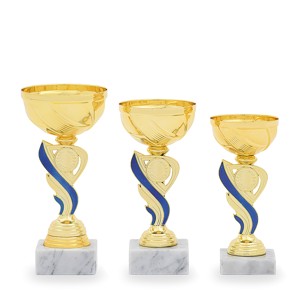 • pohár - výška 18cm, průměr 80mm barva zlatá/modrá cena - za 1ks poháru kovový kalich, mramorový podstavec, možnost umístění emblému a poklice