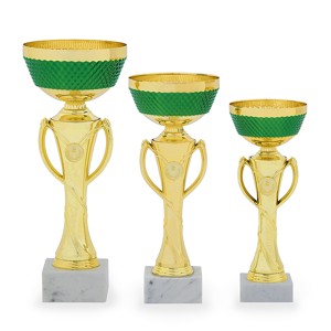 • pohár - výška 35cm, průměr 140mm barva zlatá/zelená cena - za 1ks poháru kovový kalich, mramorový podstavec, možnost umístění emblému a poklice
