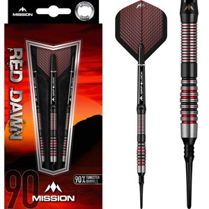 • Softové šipky Mission Red Dawn jsou wolframové šipky (90% tungsten) ve sportovním designu. Barrely jsou po celé délce drážkované. Zadní část barrelu je mírně zúžená. Černá a červená barva poskytuje ostrý kontrast k wolframu. Barrely zdobí logo Mission. Doplněny jsou nylonovými násadkami Grip Lock a letkami Mission. 90% tungsten Váha...